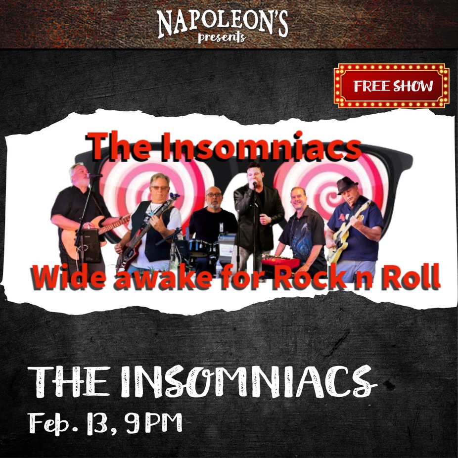 Get ready for an amazing evening with "The Insomniacs"! With more than 20 years of live performance experience, this fantastic band, led by bassist Ewell Sasser and the incredible guitarist Jeff Whalen, really knows how to captivate an audience. The talented lineup also features drummer Paul Wilson, versatile keyboardist and saxophonist Franky G., dynamic vocalist Bobby Brock, and second guitarist Keith Seilers.